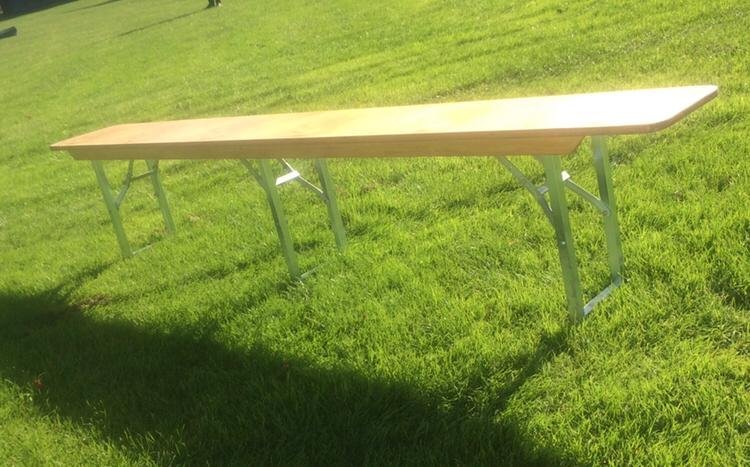 The 8ft bench can be hired as part of a set with another bench and an 8 ft table or on it’s own. When used as a stand alone piece it provides a cheap and versatile solution for indoor or outdoor seating and will take 4/5 adults comfortably.