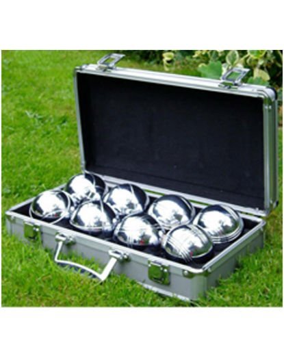 Our set of 8 polished alloy Boules is packed in a stylish metal carrying case with wooden jack and measure.