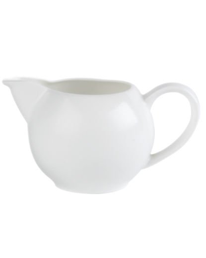 This jug is usually found at tea or coffee services to allow diners to pour milk or cream to their own strength. It features an easy to hold handle and is made of high quality materials.