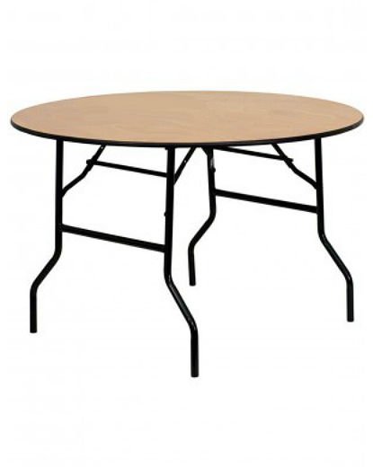 For the most adaptable and affordable choice of table, our 4 foot round table with folding legs, gives you the most flexibility when planning your event. With a durable wooden top and strong metal collapsible legs, it saves space, ensures comfort for your guests and encourages a social atmosphere which makes it perfect for weddings, informal and formal dining occasions and ceremonies.