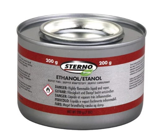 Sterno Fuel for use with our range of Chafer Units. Sterno’s non-toxic ethanol-based 200g gel chafing fuel, ready to light and use, featuring a fast heat up time and lasting around 2 hours.