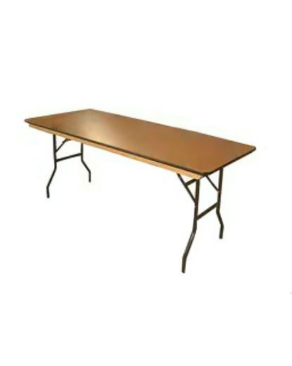 If space is limited and you need to seat as many people as possible, rectangle or square tables are the best option. This table will take 3 adults dining comfortably on each side and another two and head and foot so perfect for groups of 6 to 8.  If you are planning a more sophisticated event, or if you will be eating at the table, you may also wish to rent table linen from us, 54″ x 120″ is ideal.